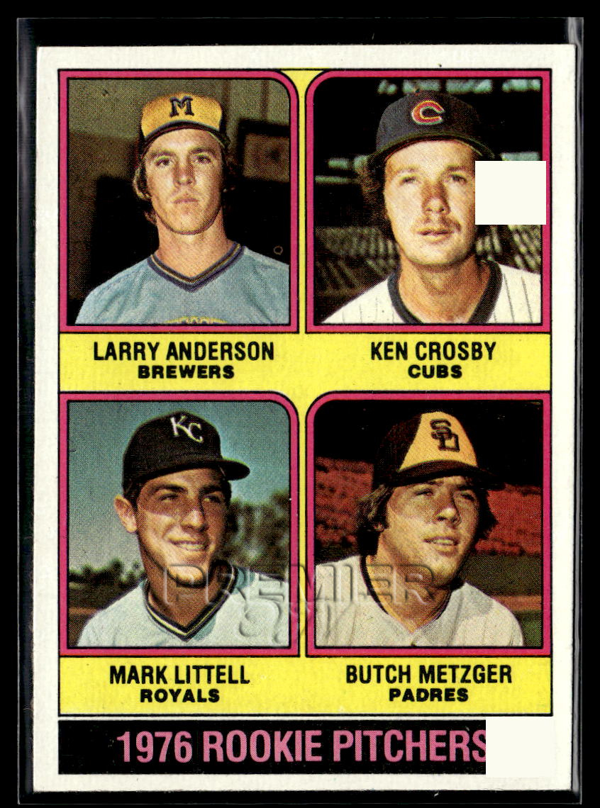 1976 Topps #593 1976 Rookie Pitchers (Larry Anderson / Ken Crosby / Mark Littell / Butch Metzger)