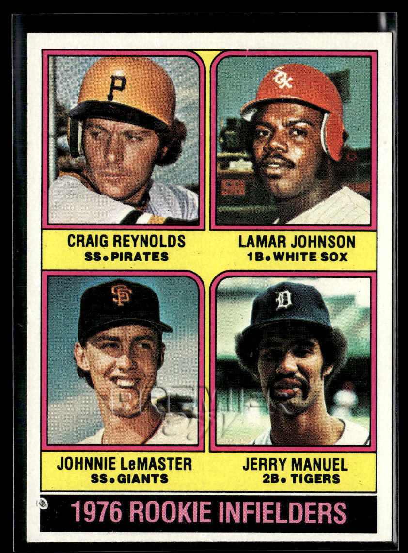 1976 Topps #596 1976 Rookie Infielders (Craig Reynolds / Lamar Johnson / Johnnie LeMaster / Jerry Manuel)