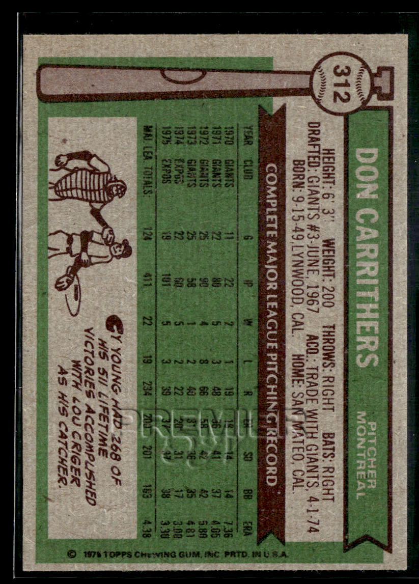 This Don Carrithers #312 . Card pictured is the actual card you will receive. All items are sold As-Is.