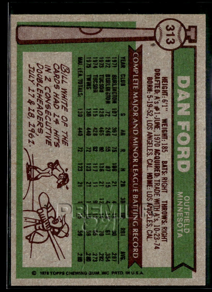 This Dan Ford #313 . Card pictured is the actual card you will receive. All items are sold As-Is.