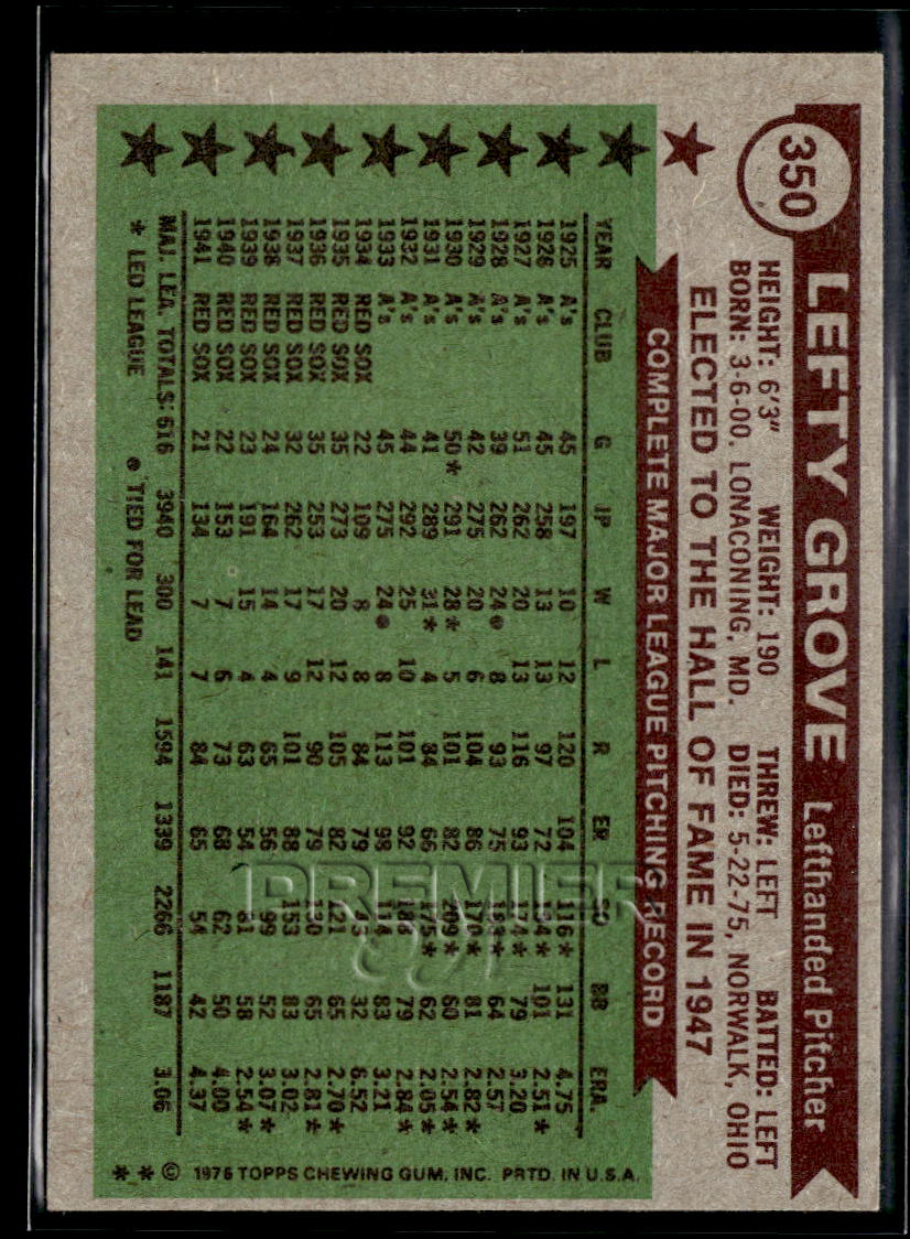 This Lefty Grove #350 . Card pictured is the actual card you will receive. All items are sold As-Is.