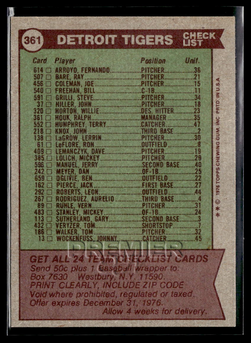 This Detroit Tigers / Ralph Houk #361 . Card pictured is the actual card you will receive. All items are sold As-Is.