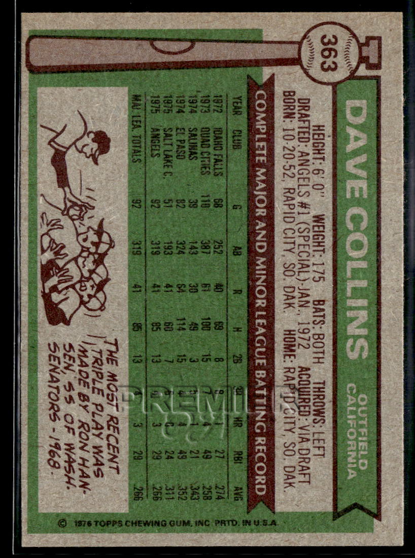 This Dave Collins #363 . Card pictured is the actual card you will receive. All items are sold As-Is.