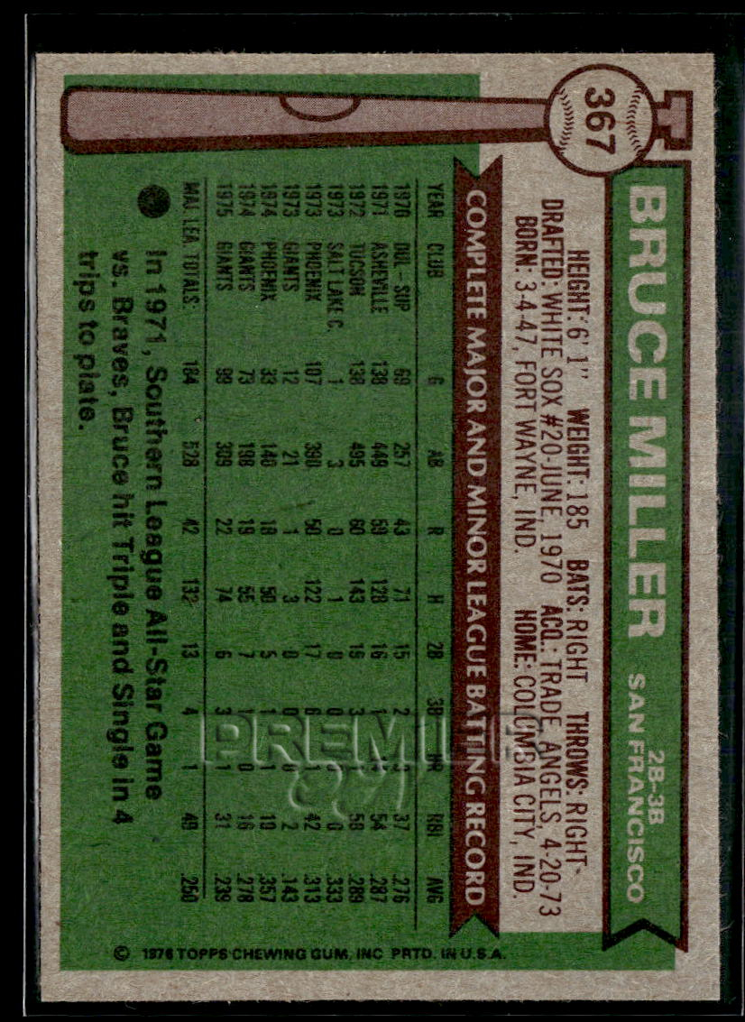 This Bruce Miller #367 . Card pictured is the actual card you will receive. All items are sold As-Is.