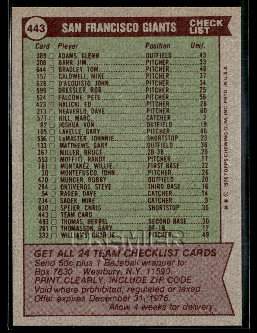 This San Francisco Giants #443 . Card pictured is the actual card you will receive. All items are sold As-Is.