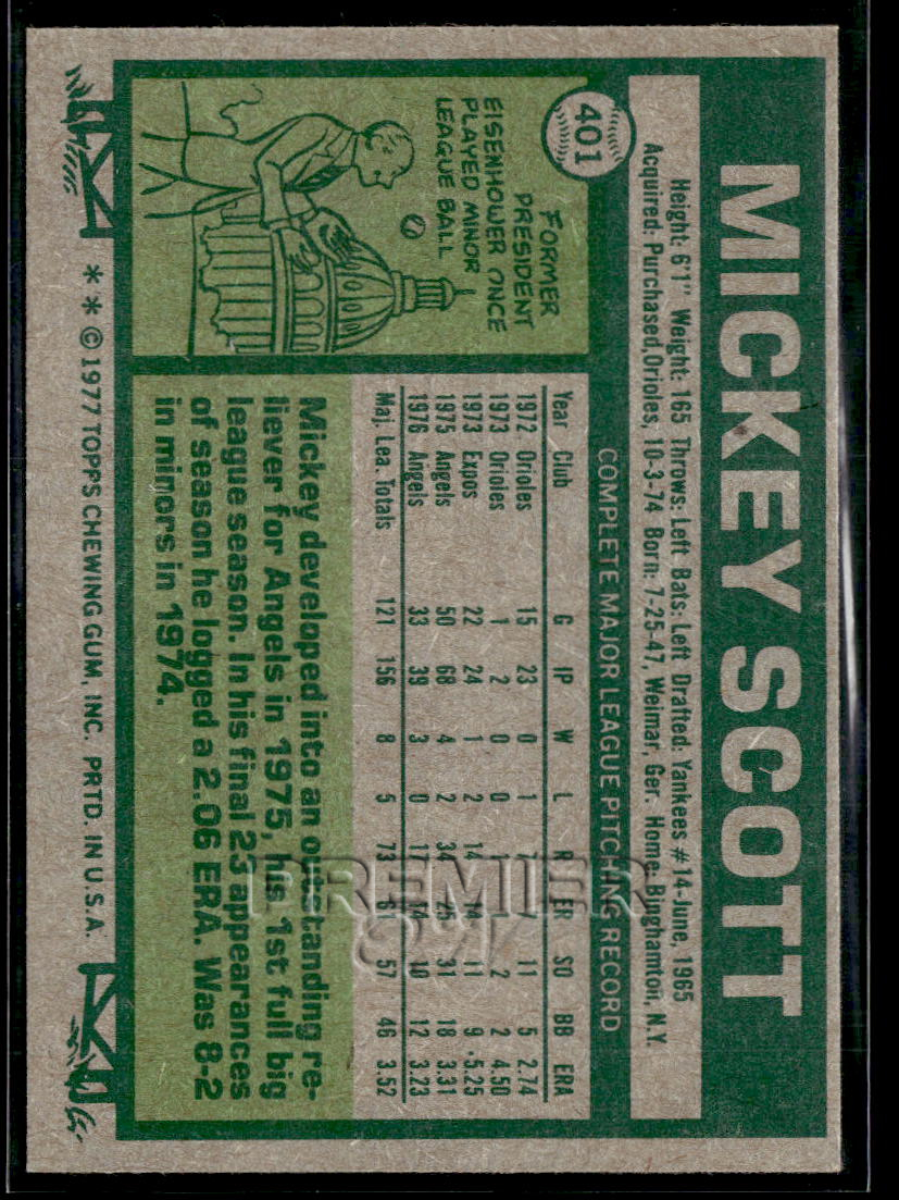 This Mickey Scott #401 . Card pictured is the actual card you will receive. All items are sold As-Is.