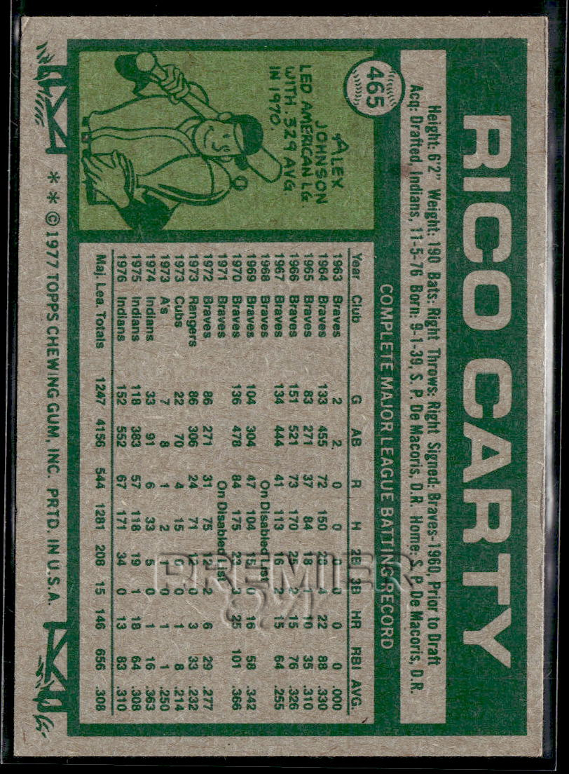 This Rico Carty #465 . Card pictured is the actual card you will receive. All items are sold As-Is.