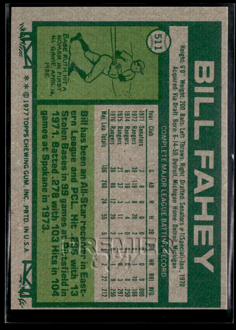 This Bill Fahey #511 . Card pictured is the actual card you will receive. All items are sold As-Is.