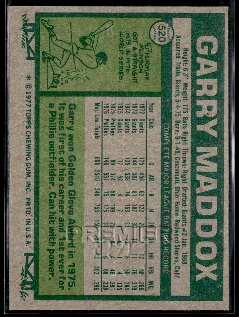This Garry Maddox #520 . Card pictured is the actual card you will receive. All items are sold As-Is.
