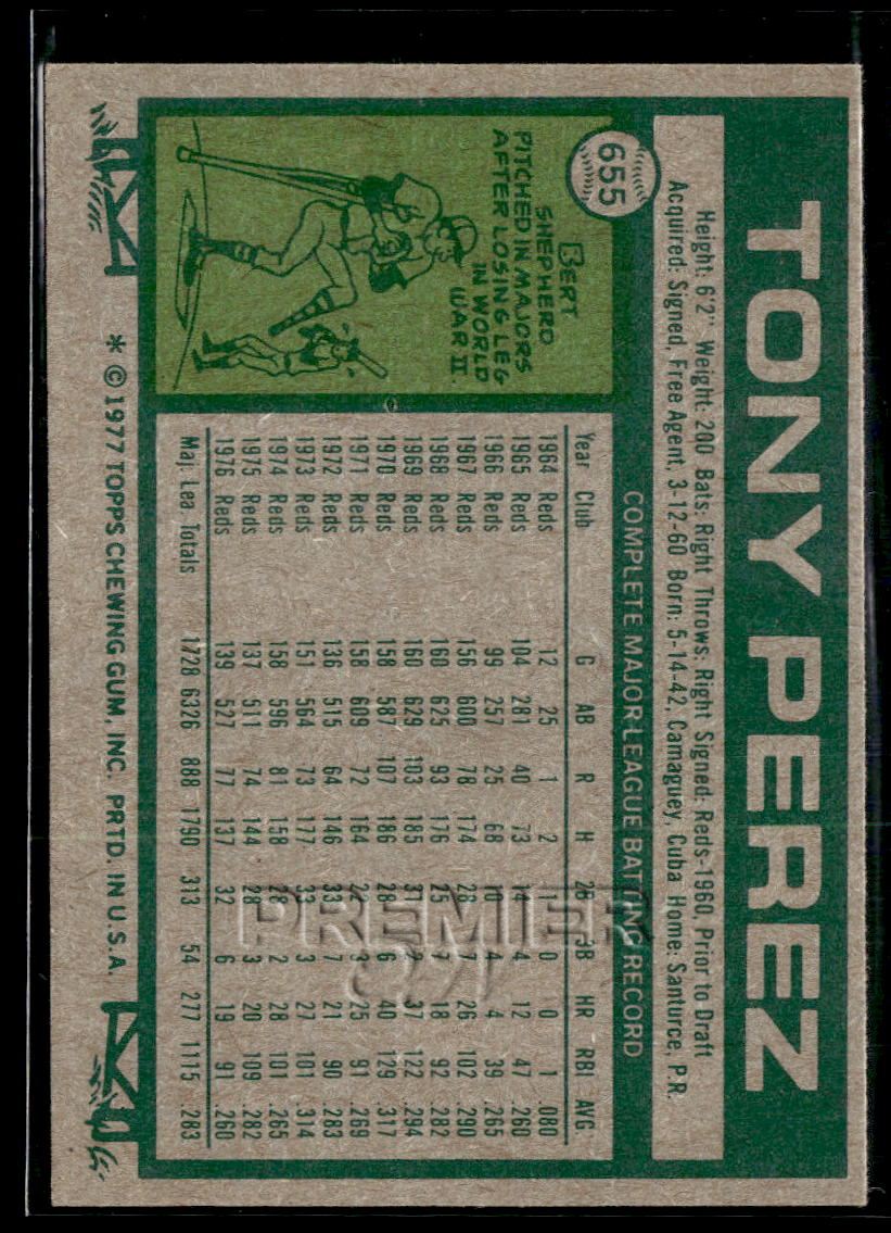 This Tony Perez #655 . Card pictured is the actual card you will receive. All items are sold As-Is.