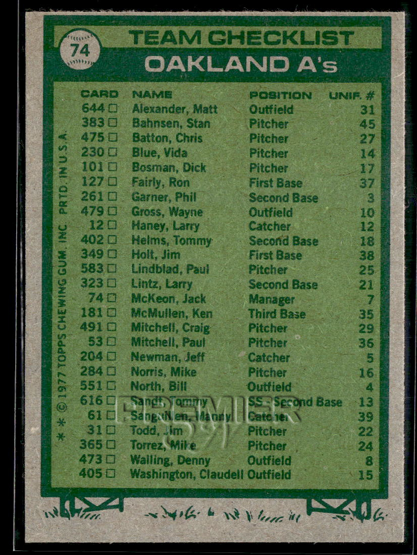 This Oakland A’s / Jack McKeon #74 . Card pictured is the actual card you will receive. All items are sold As-Is.