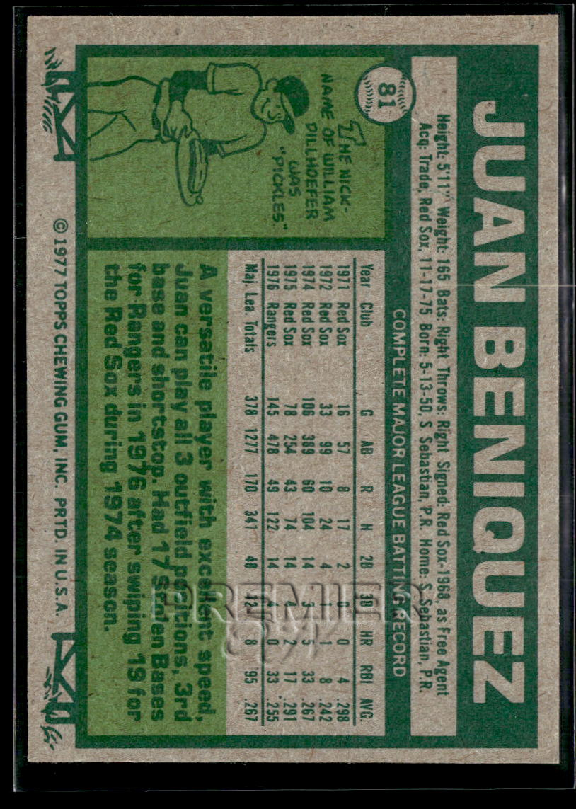 This Juan Beniquez #81 . Card pictured is the actual card you will receive. All items are sold As-Is.
