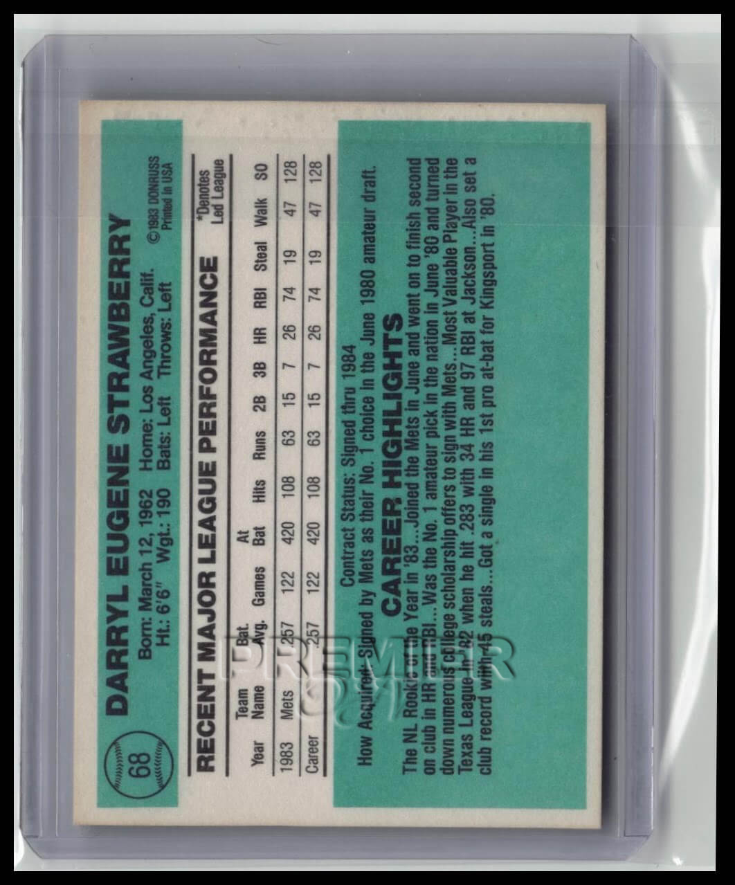 This trading card features Darryl Strawberry #68 . It comes from the 1984 Donruss sports set. The card is an original. It is a great addition to any collection. All items are sold As-Is.