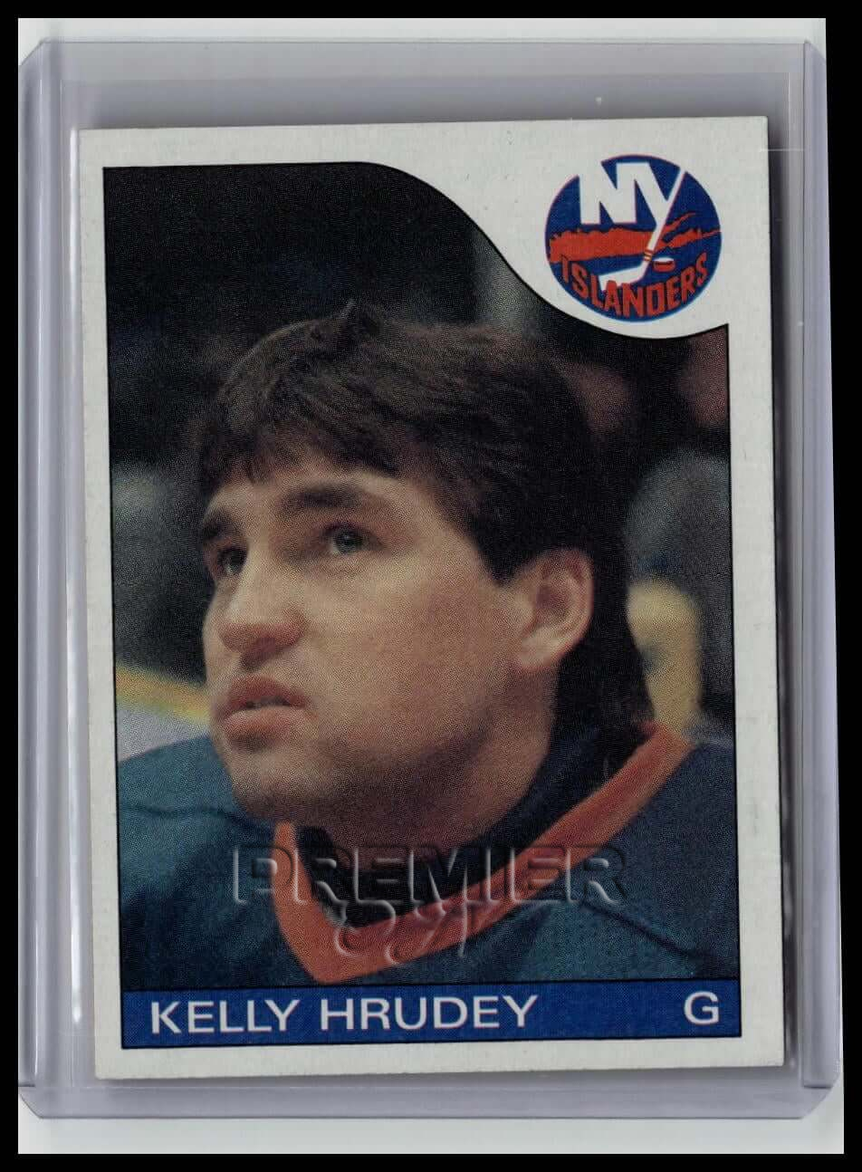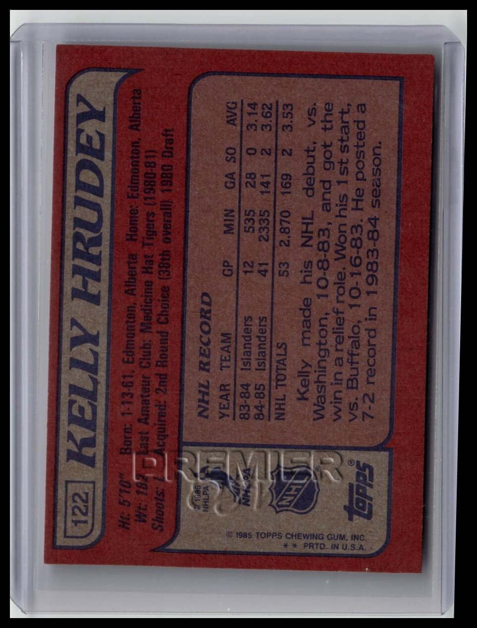This trading card features Kelly Hrudey #122 . It comes from the 1985-86 Topps sports set. The card is an original. It is a great addition to any collection. All items are sold As-Is.