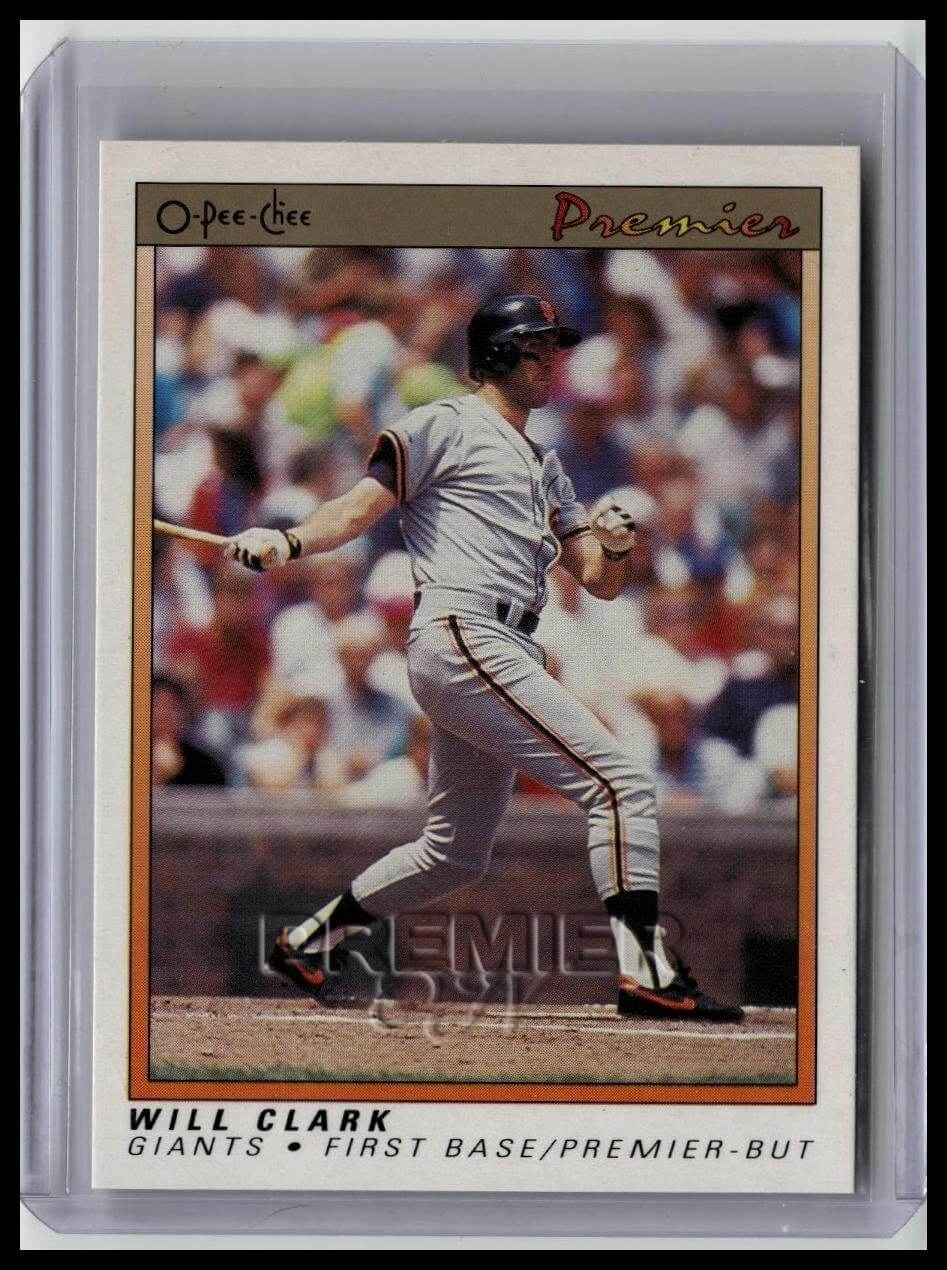 This trading card features Will Clark #22 . It comes from the 1991 O-Pee-Chee Premier sports set. The card is an original. It is a great addition to any collection. All items are sold As-Is.