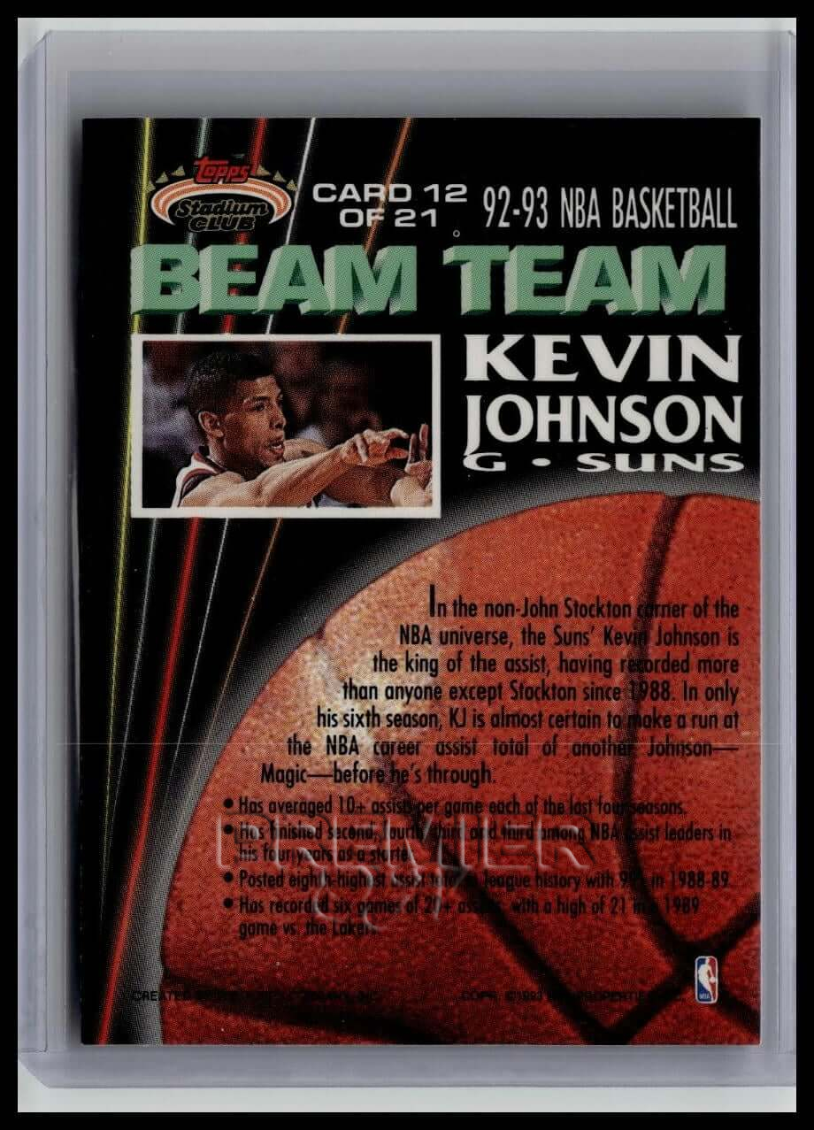 This trading card features Kevin Johnson #12 . It comes from the 1992-93 Stadium Club sports set. The card is an original. It is a great addition to any collection. All items are sold As-Is.