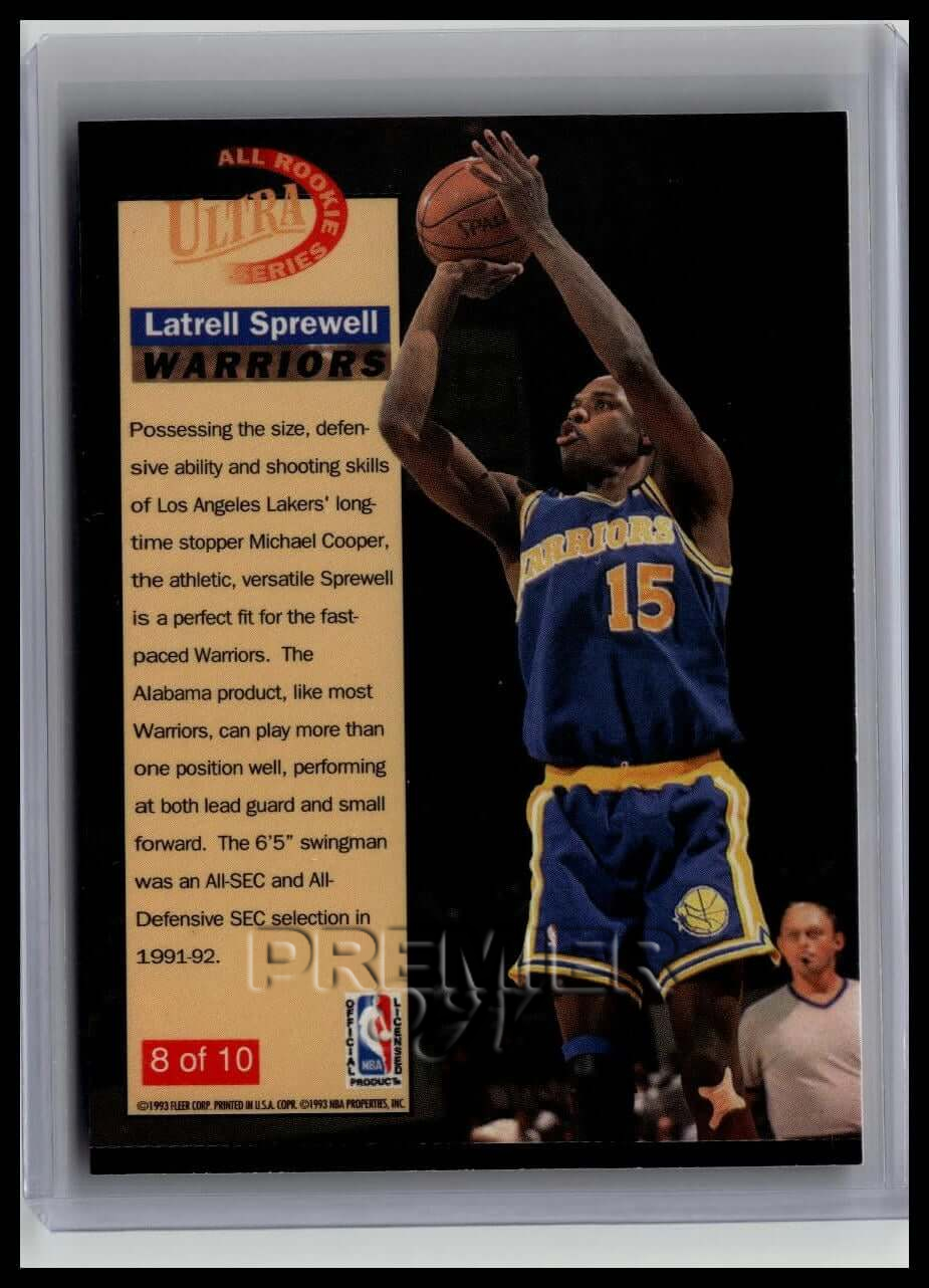 This trading card features Latrell Sprewell #8 . It comes from the 1992-93 Ultra sports set. The card is an original. It is a great addition to any collection. All items are sold As-Is.