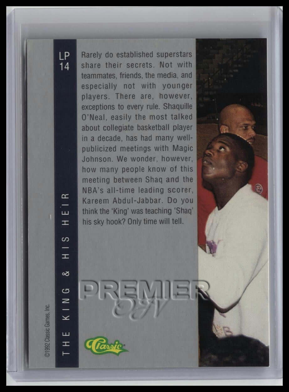 This trading card features The King and His Heir #LP14 . It comes from the 1992 Classic Four Sport sports set. The card is an original. It is a great addition to any collection. All items are sold As-Is.
