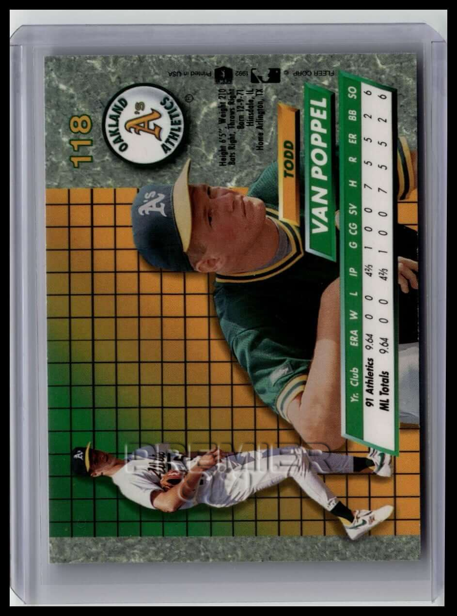 This trading card features Todd Van Poppel #118 . It comes from the 1992 Ultra sports set. The card is an original. It is a great addition to any collection. All items are sold As-Is.