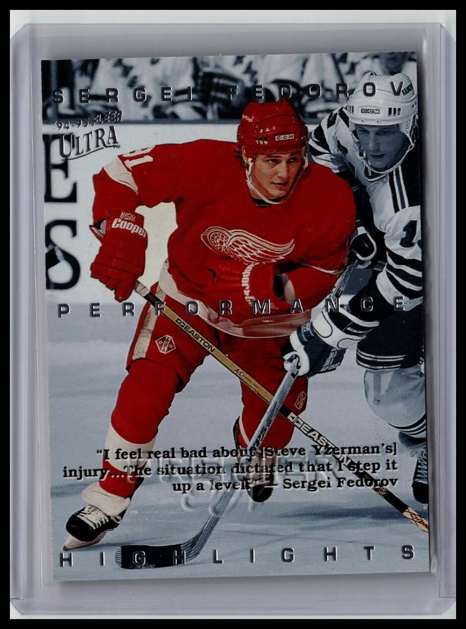 This trading card features Sergei Fedorov #10 . It comes from the 1994-95 Ultra sports set. The card is an original. It is a great addition to any collection. All items are sold As-Is.