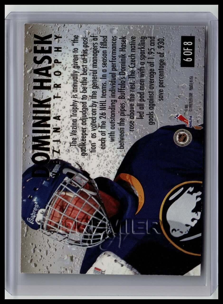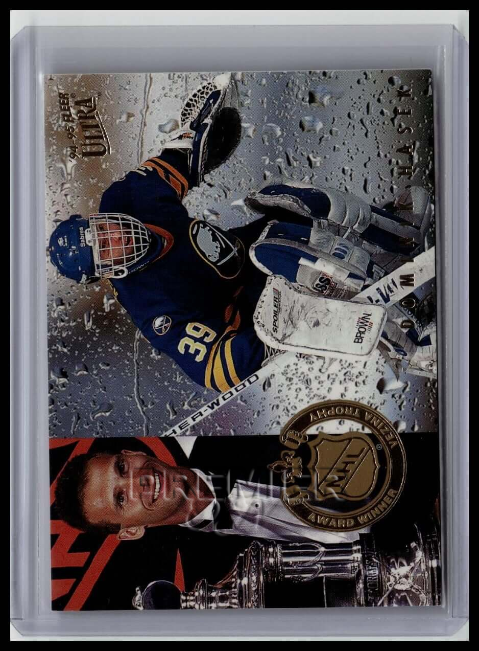 This trading card features Dominik Hasek #6 . It comes from the 1994-95 Ultra sports set. The card is an original. It is a great addition to any collection. All items are sold As-Is.