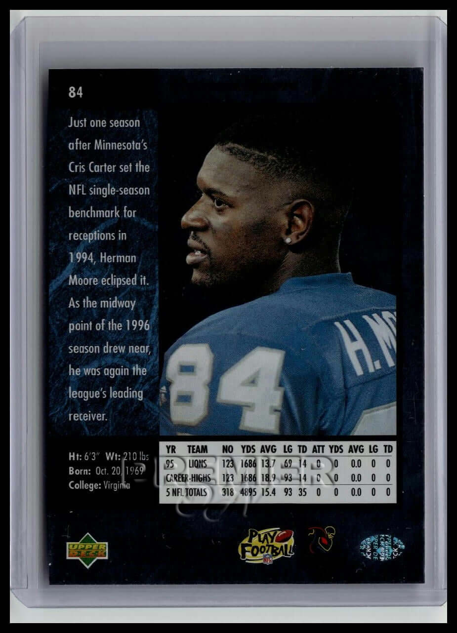 This trading card features Herman Moore #84 . It comes from the 1996 SP sports set. The card is an original. It is a great addition to any collection. All items are sold As-Is.