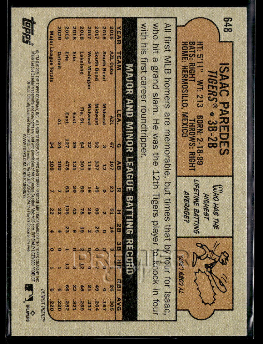 This Isaac Paredes #648 . Card pictured is the actual card you will receive. All items are sold As-Is.