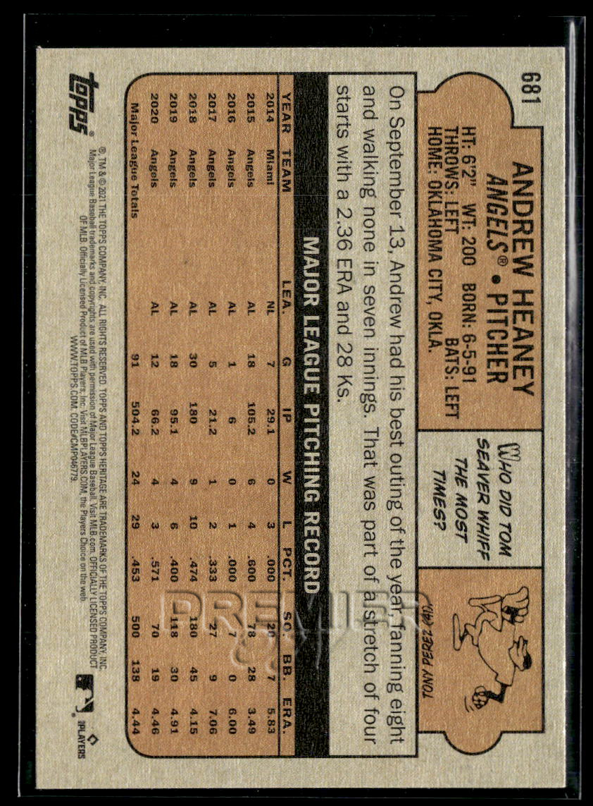 This Andrew Heaney #681 . Card pictured is the actual card you will receive. All items are sold As-Is.