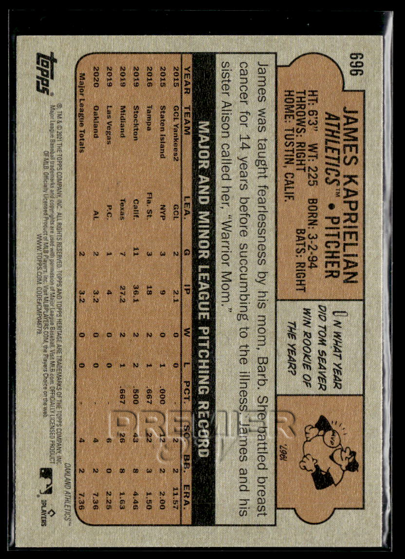 This James Kaprielian #696 . Card pictured is the actual card you will receive. All items are sold As-Is.